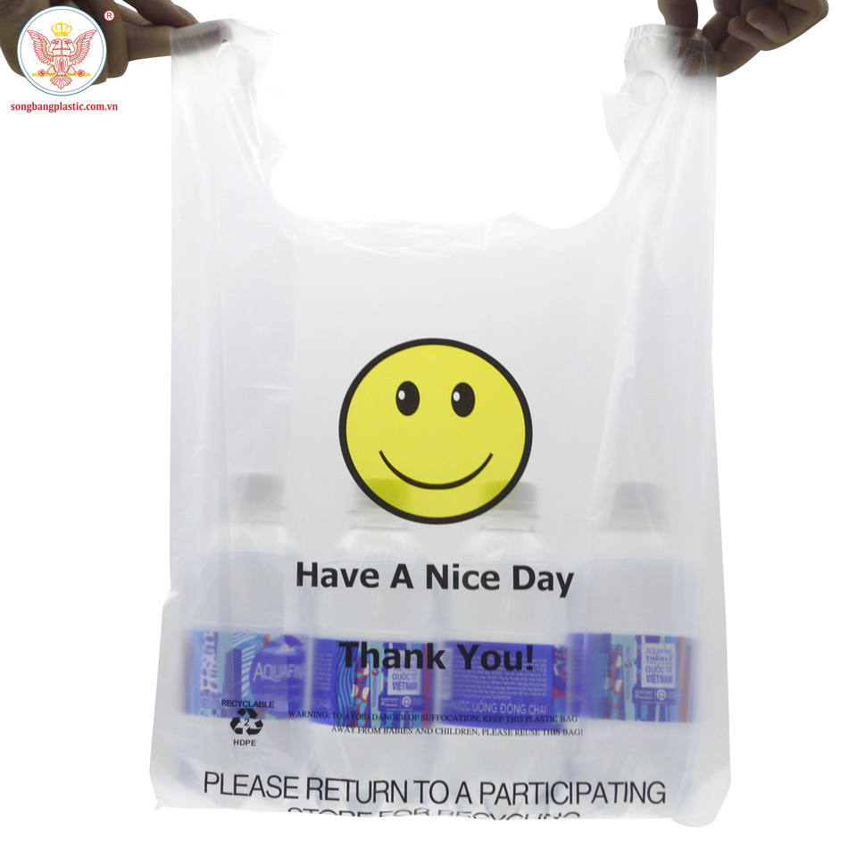 OEM เสื้อยืดพิมพ์ลายกราเวียร์อัตโนมัติกำหนดเองขอบคุณกระเป๋าช้อปปิ้งพลาสติก PE มีโลโก้สำหรับบรรจุภัณฑ์ขน