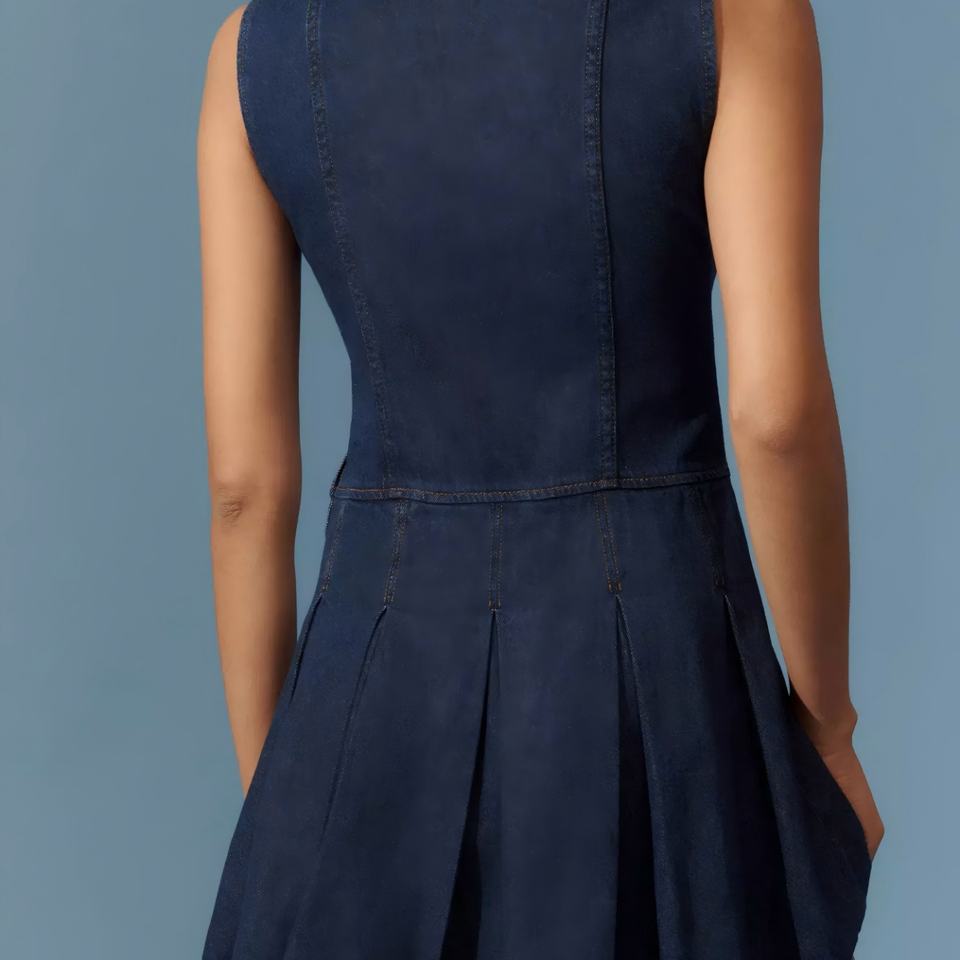 OEM Custom Boutiques Clothes Women's Denim Shirt Dress Sleeveless Pleated A-line Skirt Elegant Jeans Dresses Ladies