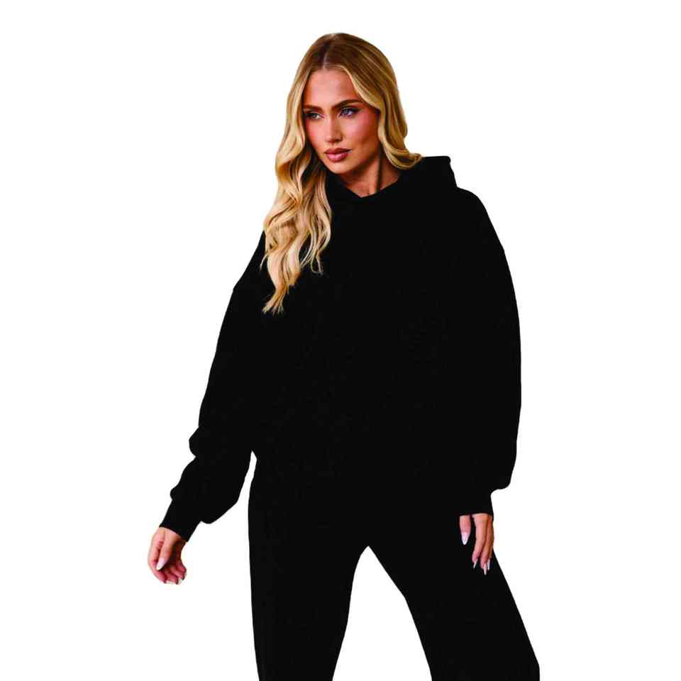 เซ็ตเสื้อครอปมีฮู้ดของผู้หญิงสีน้ำตาลระบายอากาศได้ดีผ้าฝ้ายฝรั่งเศสเทอร์รี่สีพื้นและปกมีฮู้ด