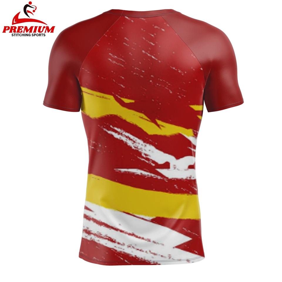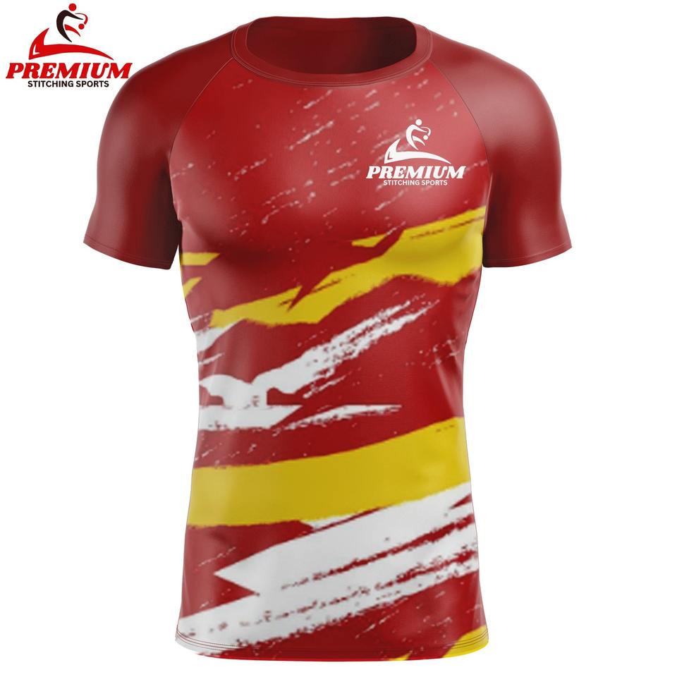 เสื้อแรชการ์ดแขนยาวผู้ชาย OEM ผลิตตามสั่ง ระบายอากาศได้ดี เป็นมิตรกับสิ่งแวดล้อม ป้องกันแบคทีเรีย แห้งเร็ว ป้องกันรังสียูวี UPF50 ผ้ายืดสแปนเด็กซ์/โพลีเอสเตอร์ สำหรับเล่นเซิร์ฟ