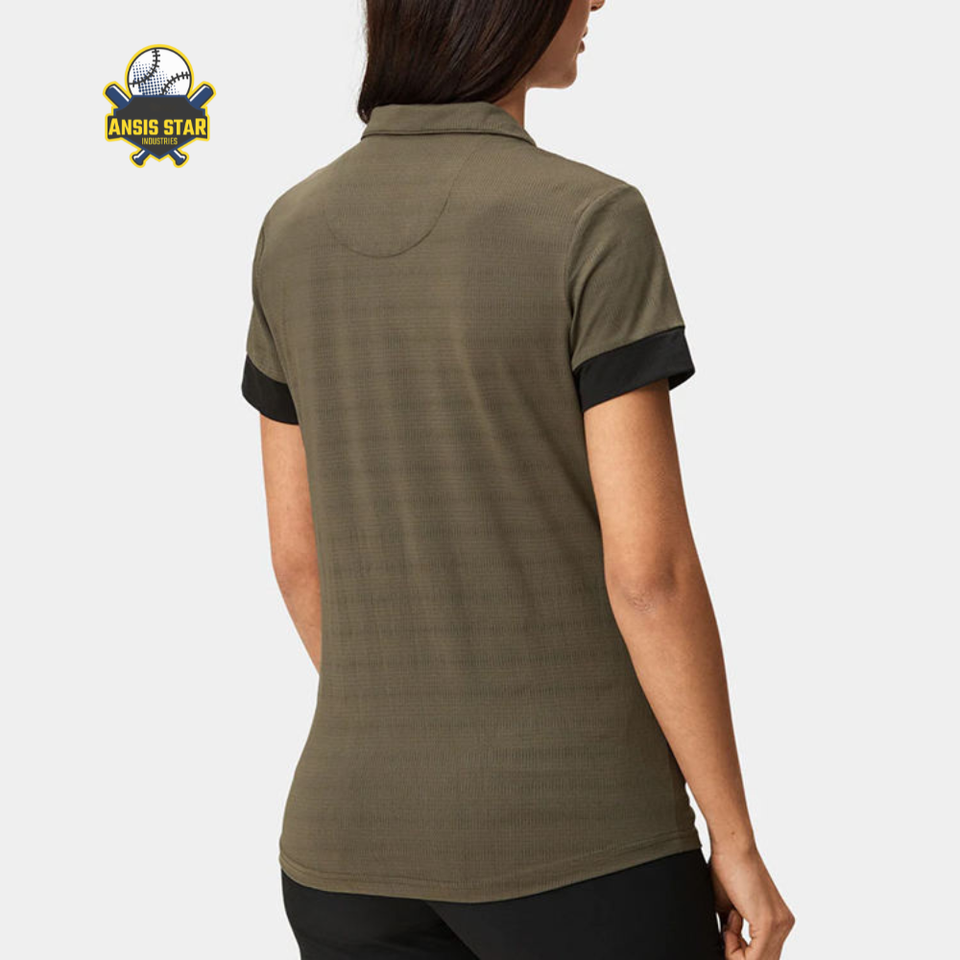 เสื้อโปโลสำหรับผู้หญิงเสื้อโปโลคอวีสีผสมสำหรับเล่นกอล์ฟเสื้อโปโลระบายอากาศน้ำหนักเบาออกแบบได้ตามต้องการ