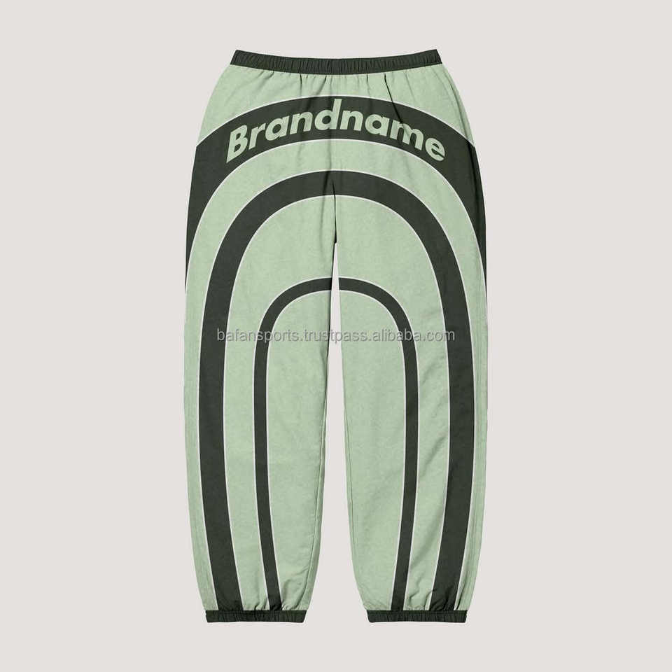 กางเกงกันลมผ้าไนลอนสำหรับผู้ชายกางเกงกันลมลายทางมีกระดุมสำหรับผู้ชายกางเกงกันลมตรงประดับพลอยเทียมงานตามสั่ง OEM