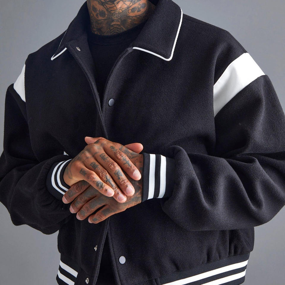 แจ็คเก็ตเบสบอลวาร์ซิตี้แบบวินเทจ แขนหนังปักไหมเชนิลล์ ระบายอากาศได้ดี สำหรับผู้ชาย ผลิตตามแบบ OEM