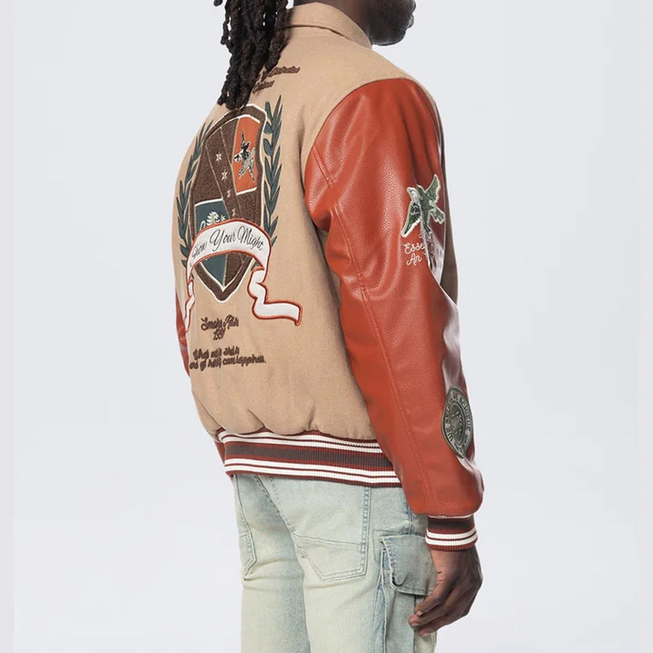 แจ็คเก็ตวาร์ซิตี้แบบกำหนดเองสำหรับผู้ชาย สไตล์วินเทจ ตัวอักษร OEM สำหรับฤดูหนาว แบบเบสบอล คอเต่า ผ้าขนสัตว์ กันลม ระบายอากาศ บุขนสัตว์ให้ความอบอุ่น
