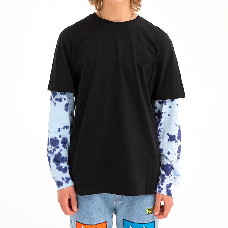 เสื้อยืดโอเวอร์ไซส์ผ้าฝ้ายสั่งทำพิเศษ พิมพ์ลายสกรีน แขนยาวสองชั้น ทรงบ็อกซี่ ตัดสั้น ขาดๆ สำหรับผู้ชาย