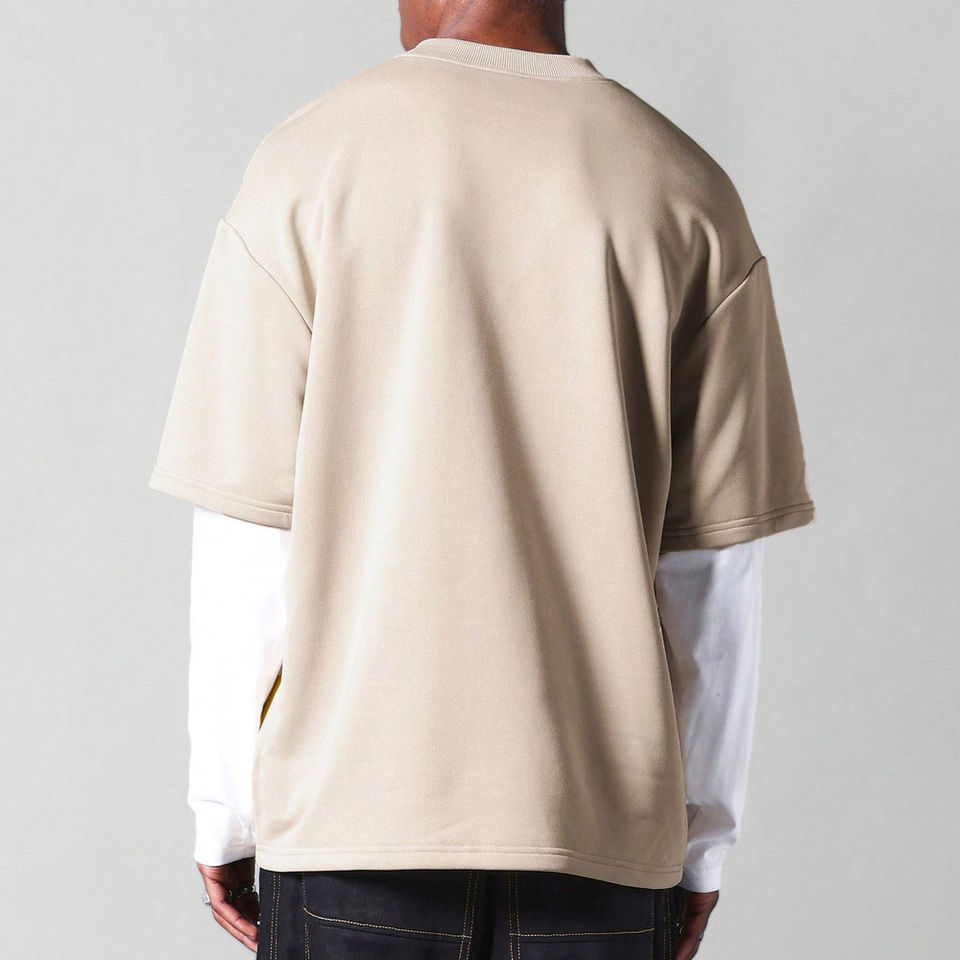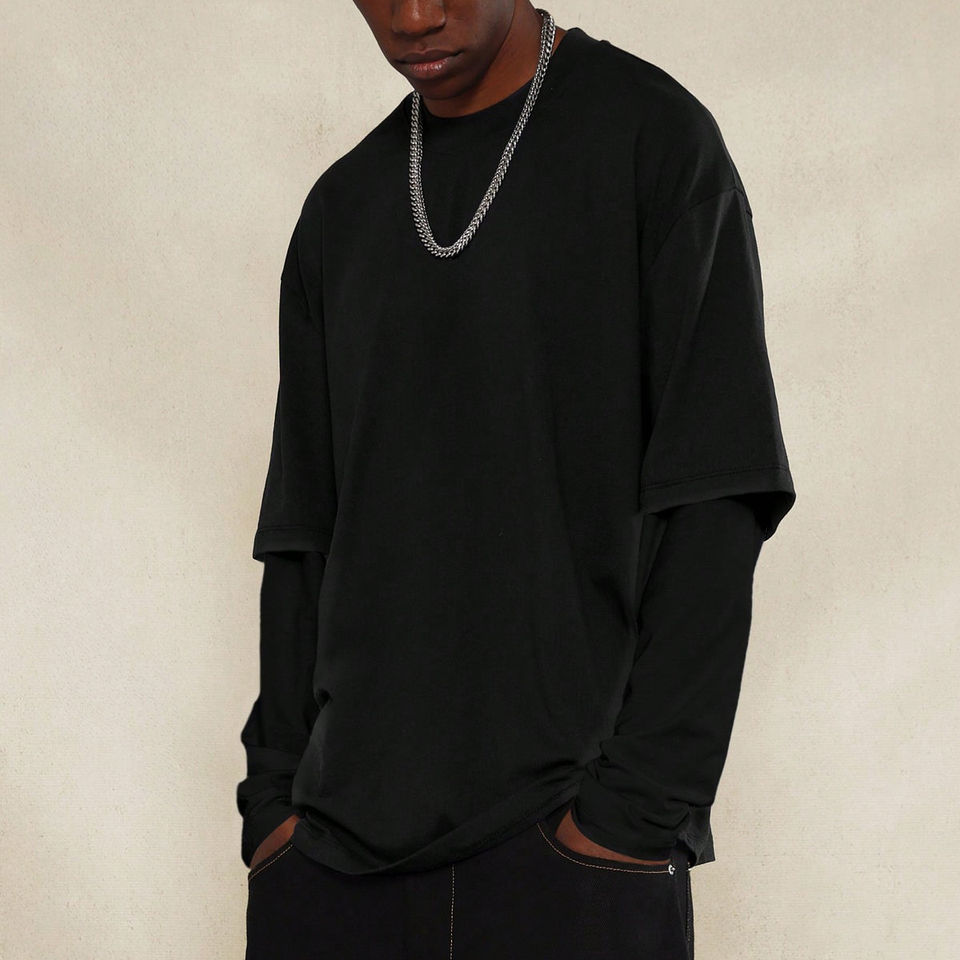OEM Custom Cotton Oversize Washed T-Shirt Screen Printed Double Layer Long Sleeve Boxy Cropped Ripped Distressed Men's T-shirts