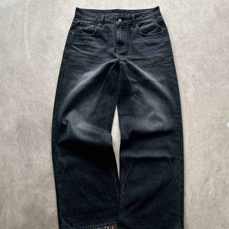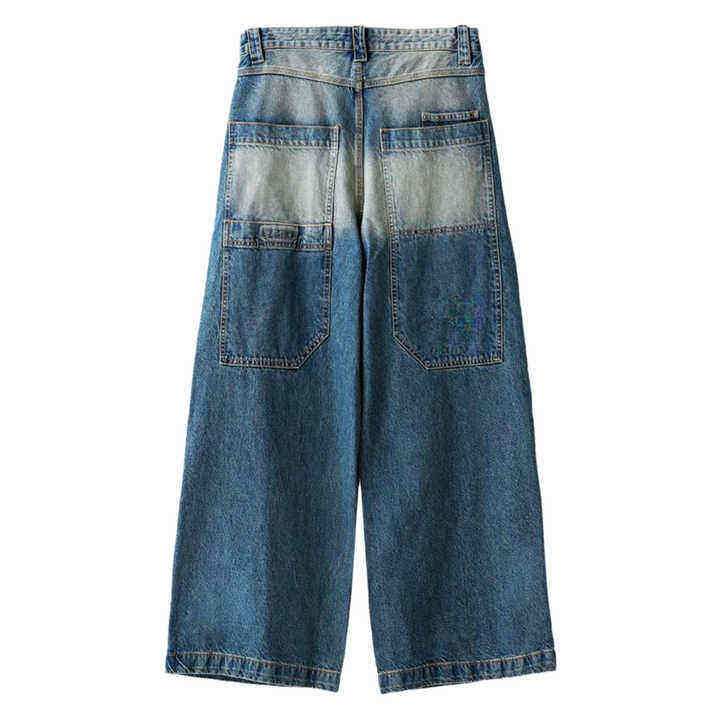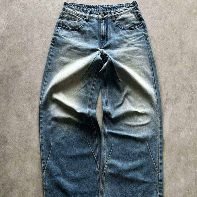 กางเกงยีนส์ผู้ชายสไตล์สตรีทแวร์ ยี่ห้อ OEM ผลิตตามสั่ง ผ้าคอตตอนผสมสแปนเด็กซ์ พิมพ์ลายแบบแพทช์เวิร์ค สไตล์วินเทจ ย้อนยุค ฮิปฮอป Y2K ทรงตรง เอวกลาง
