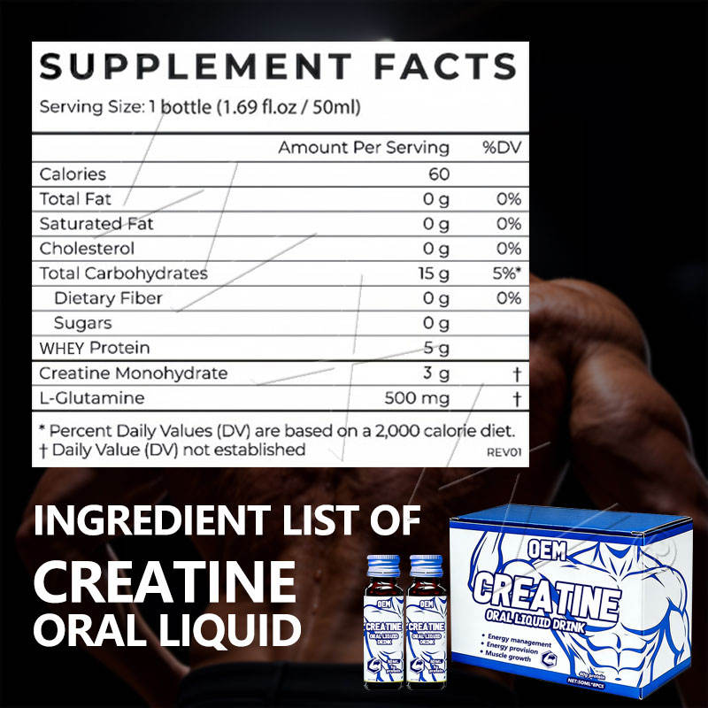 เครื่องดื่มครีเอทีนโมโนไฮเดรตแบบน้ำสูตรเฉพาะสำหรับ OEM ช่วยเสริมสร้างกล้ามเนื้อและฟื้นฟูพลังงาน พร้อมด้วย BCAA และสารสกัดจากสมุนไพร