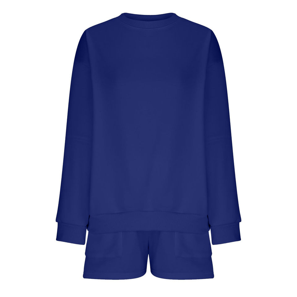 ชุดเสื้อสเวตเชิ้ตแขนยาวคอกลมและกางเกงขาสั้นผู้ชาย แบบ OEM สั่งทำพิเศษ คุณภาพพรีเมียม สีพื้น สำหรับฤดูหนาว ปี 2026