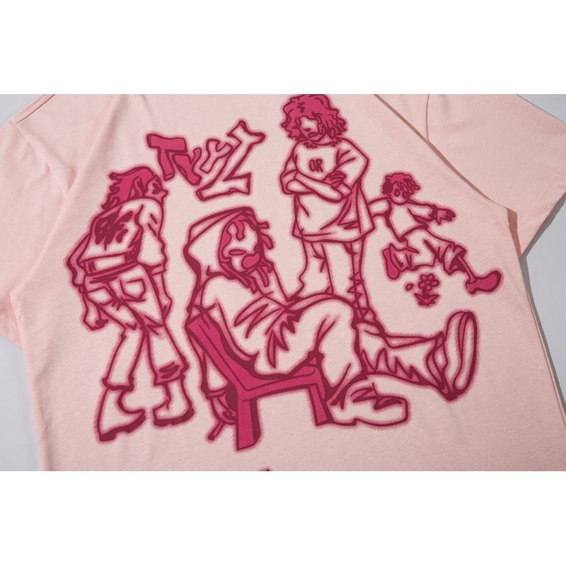 เสื้อยืดโอเวอร์ไซส์พิมพ์ลาย DTG สำหรับผู้ชายเสื้อยืดทรงครอปบ็อกซี่ฟิตสำหรับผู้ชายเสื้อสไตล์สตรีทแวร์ผ้าคอตตอนไหล่100%