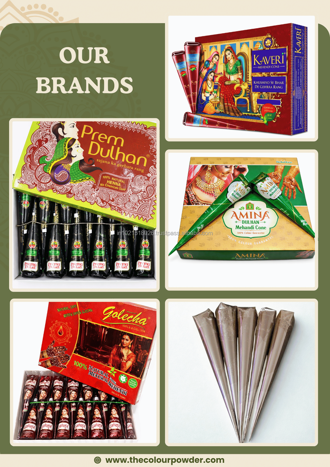 โคนเฮนน่าสีน้ำตาลเข้มแบบกำหนดเองสำหรับงานแต่งงานและงานเฉลิมฉลองแบบอินเดีย บรรจุภัณฑ์ครีมแบบเป็นก้อน