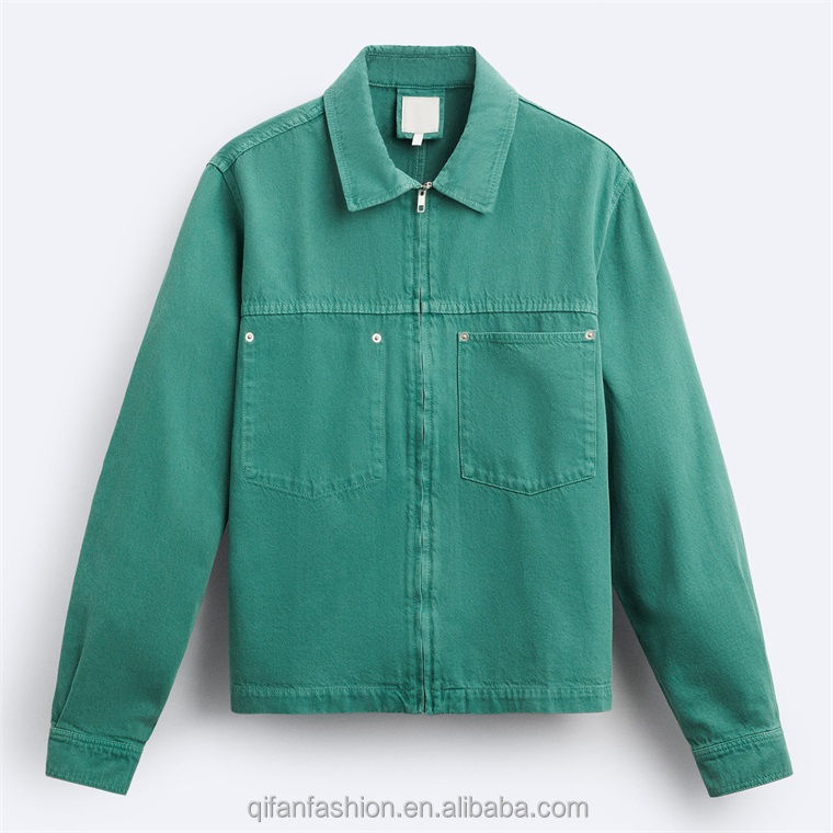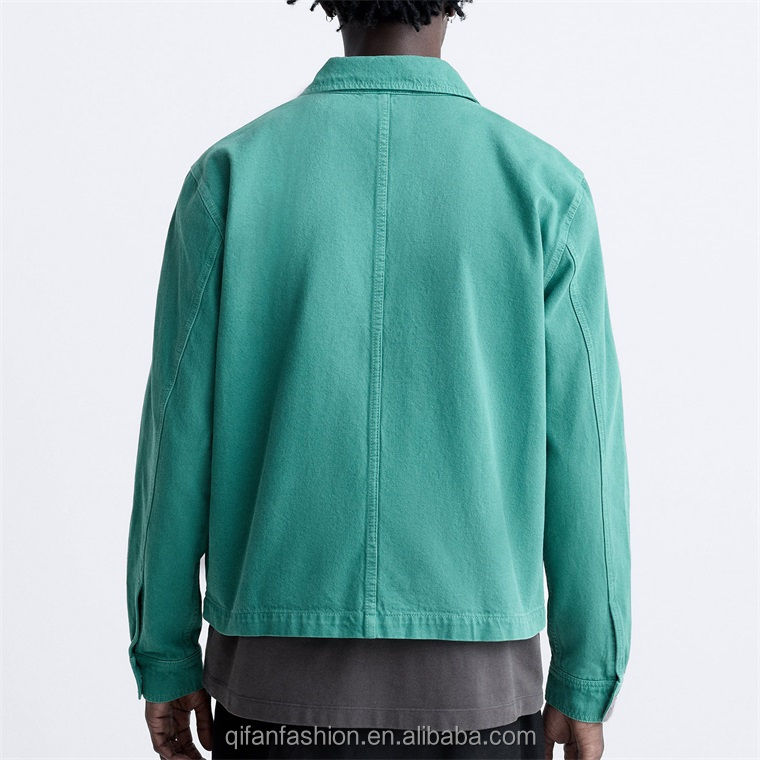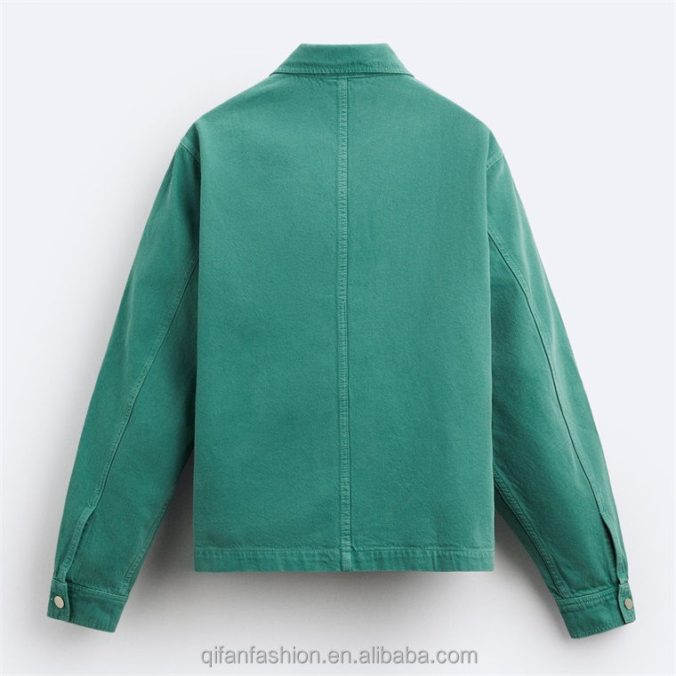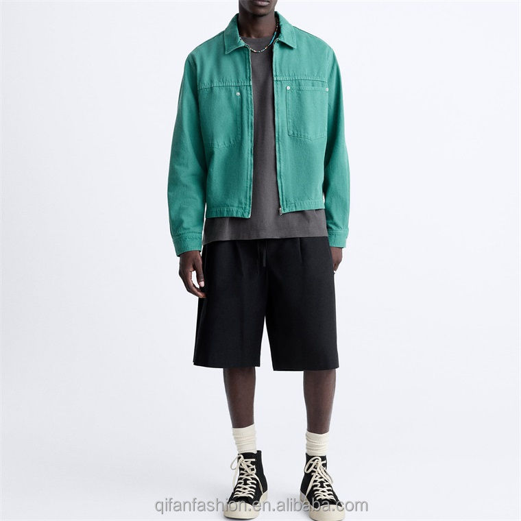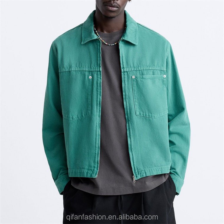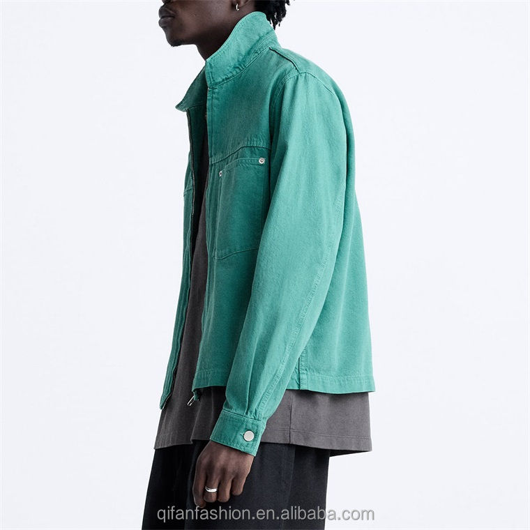 แจ็กเก็ตยีนส์สำหรับผู้ชายเสื้อครอปแบบมีปกเสื้อยีนส์ออกแบบได้ตามต้องการ