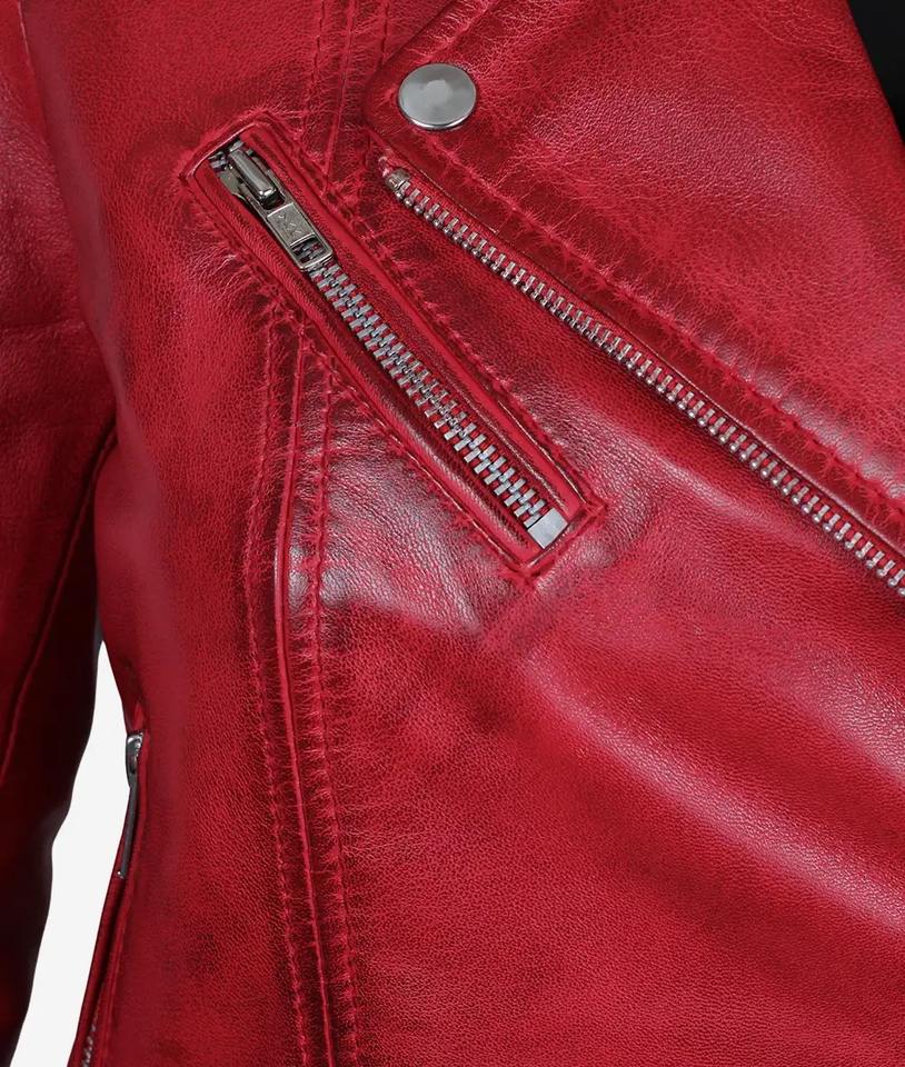 OEM Custom Design Fashionable Stylish Red Color Plain Blank Zipper Cuffs Leather jackets For Women's Winter Clothing Jackets