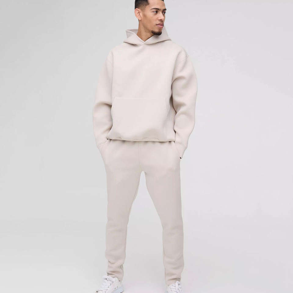 ชุดวอร์ม2ชิ้นสำหรับผู้ชายชุดออกกำลังกายผ้าฝ้าย100% มีฮู้ดและกางเกงจ็อกเกอร์ออกแบบโลโก้ได้ตามต้องการ