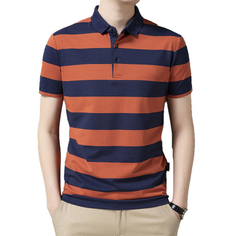 เสื้อโปโลลายทางแขนสั้นของผู้ชายเสื้อโปโลขนาดใหญ่ปกครึ่งแขนออกแบบได้ตามต้องการ