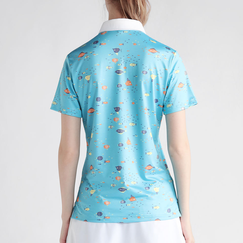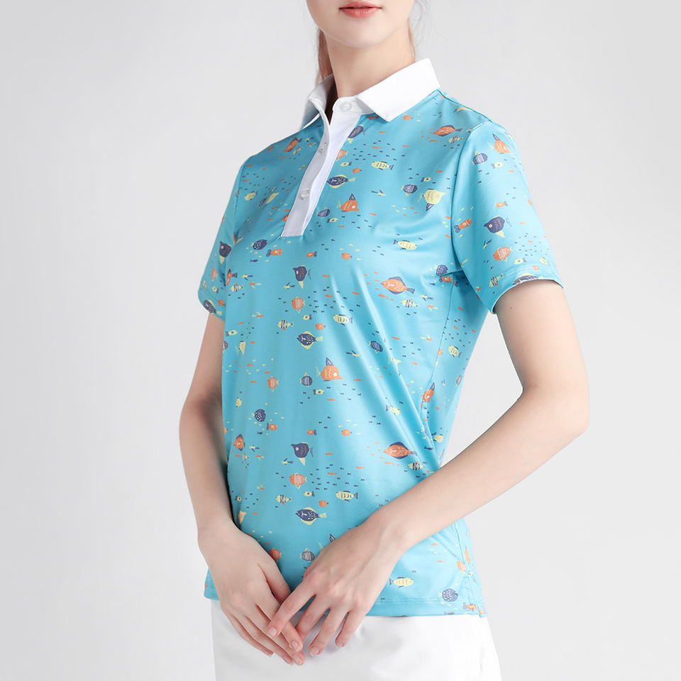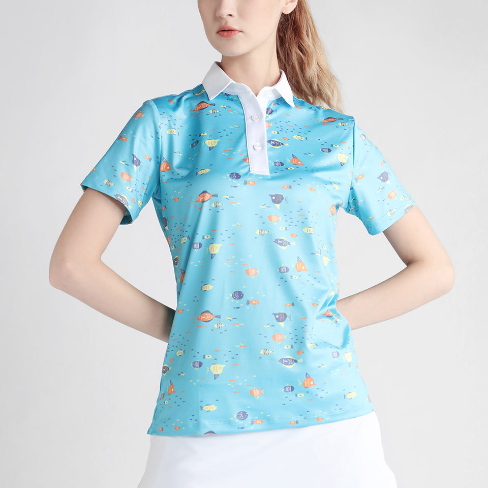 เสื้อกอล์ฟผู้หญิงทรงสลิมฟิตแบบลำลอง ออกแบบตามสั่ง OEM ระบายอากาศได้ดี ป้องกันรอยยับ แห้งเร็ว ปักโลโก้สำหรับสวมใส่