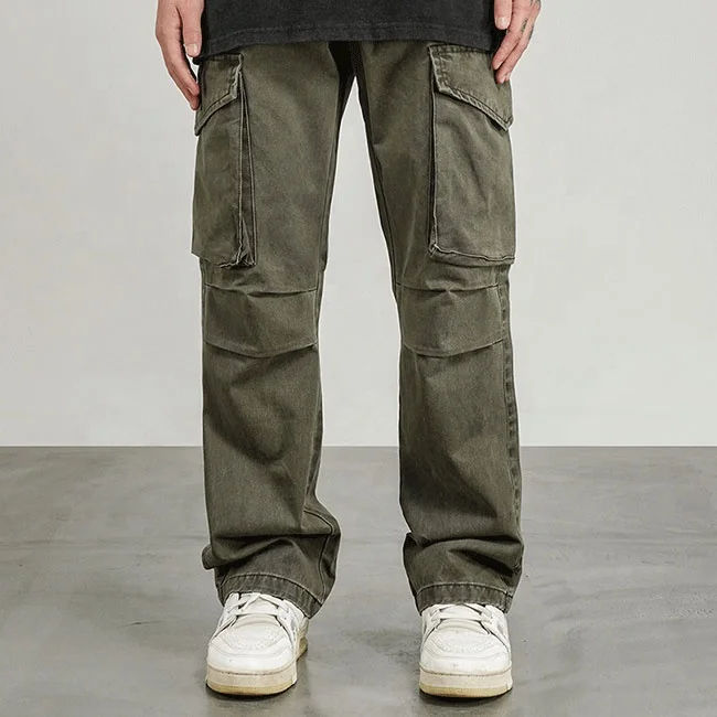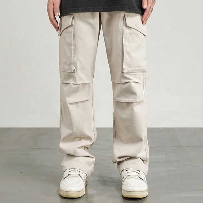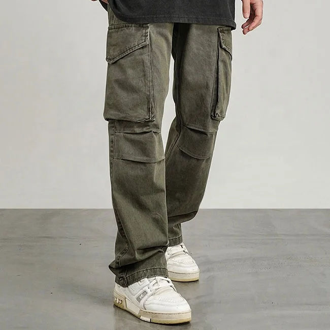 กางเกงคาร์โก้แฟชั่นสตรีทดีไซน์ OEM แบบกำหนดเองสำหรับผู้ชาย มีกระเป๋าข้าง ขายดี กางเกงคาร์โก้ขากว้างสำหรับผู้ชาย สไตล์สตรีทแวร์