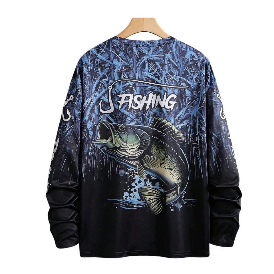 เสื้อตกปลาแบบสั่งทำพิเศษสำหรับผู้ใหญ่ ดีไซน์ OEM พิมพ์ลายแบบซับลิเมชั่น ป้องกันแสงแดดประสิทธิภาพสูง UPF 50 ผลิตจากผ้าสแปนเด็กซ์/โพลีเอสเตอร์