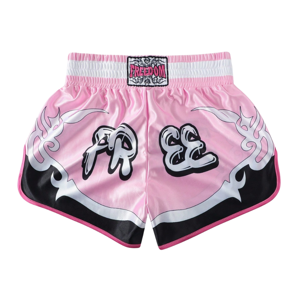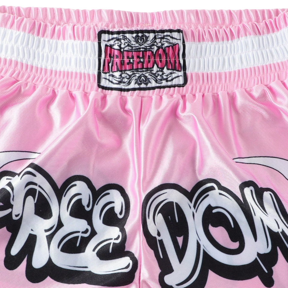 กางเกงมวยไทยแบบสั่งทำพิเศษ พิมพ์ลายแบบซับลิเมชั่น กางเกงคิกบ็อกซิ่งแบบสั่งทำ พร้อมปักโลโก้ ผลิตจากผ้าซาติน