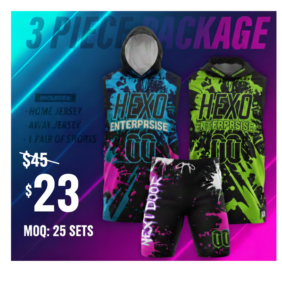 ชุดยูนิฟอร์มฟุตบอลแบบ 7 คน 3 ชิ้น พร้อมฮู้ด ออกแบบตามสั่ง OEM ขายส่ง พร้อมปักธงและชื่อหมายเลขของคุณ