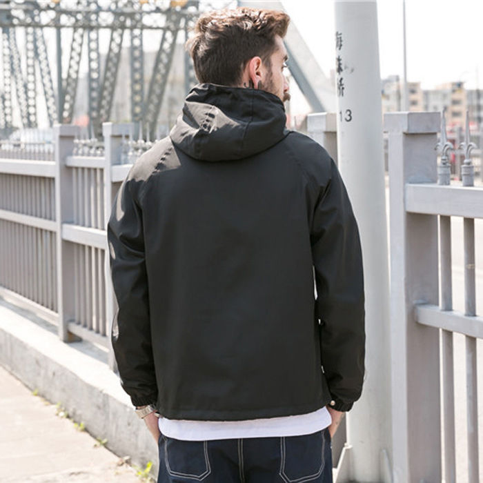 เสื้อกันลมแนวสตรีทฮิปฮอปของผู้ชายเสื้อแจ็คเก็ตโพลีเอสเตอร์100% พอดีตัวลำลองกลางแจ้งเสื้อกันลมสำหรับผู้ชาย