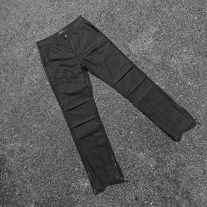 กางเกงคาร์โก้ขายาวสำหรับผู้ชายกางเกงเคลือบแวกซ์มีซิปหลายกระเป๋าสไตล์ดีไซน์เนอร์ออกแบบได้ตามต้องการ