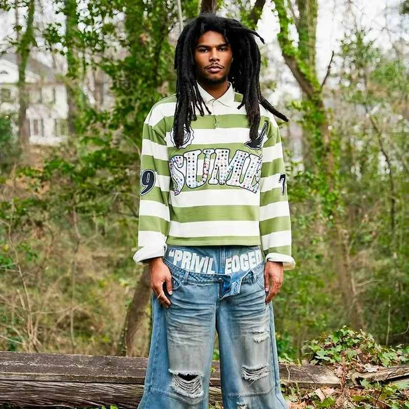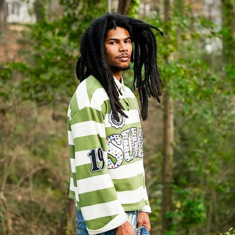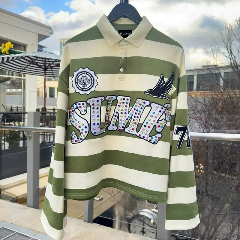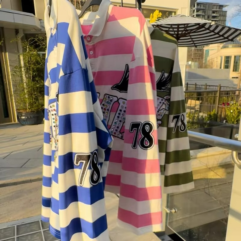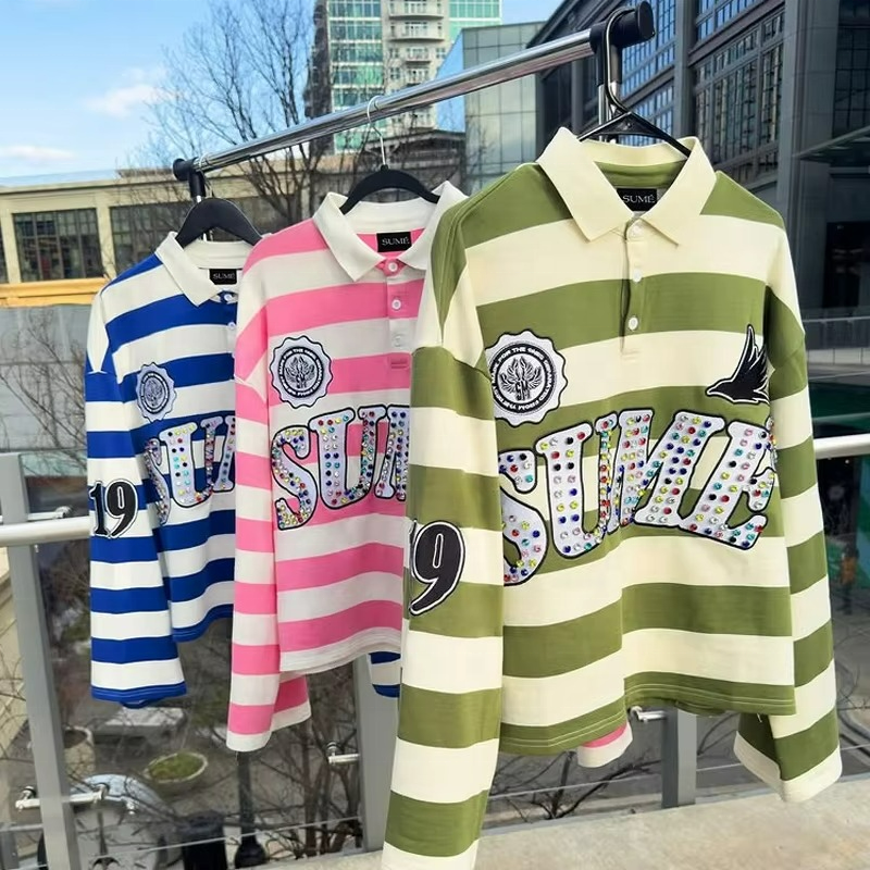 เสื้อโปโลผู้ชายแบบสั่งทำ OEM ทรงหลวม ตกแต่งลูกปัด ปักลายเรียบหรู สีตัดต่อ