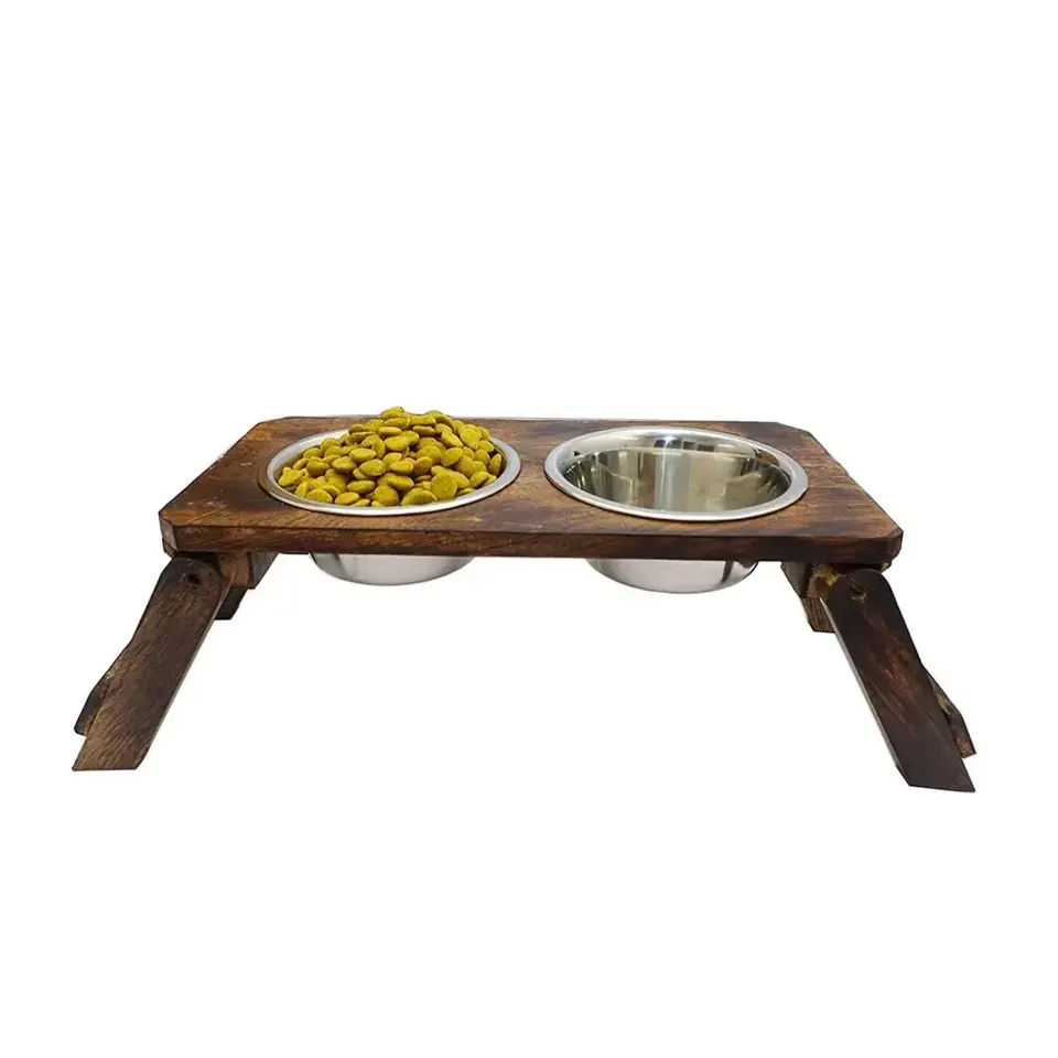 ชามให้อาหารสัตว์เลี้ยงทำจากไม้ปรับความสูงได้สำหรับตกแต่งห้องนั่งเล่นของอินเดีย