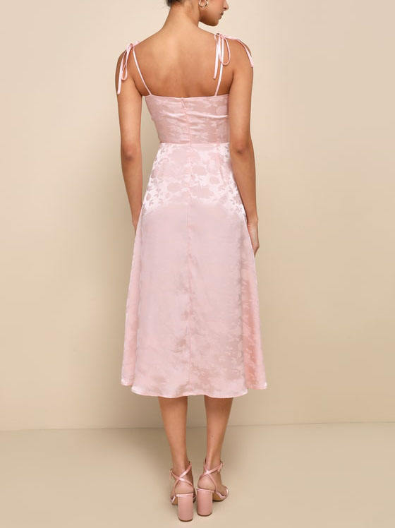 เดรสผ้าซาตินมิดิแบบสง่างามชุดเดรสสายเดี่ยวสุดเซ็กซี่สำหรับงานปาร์ตี้ตอนเย็นปกสี่เหลี่ยมปักยาว