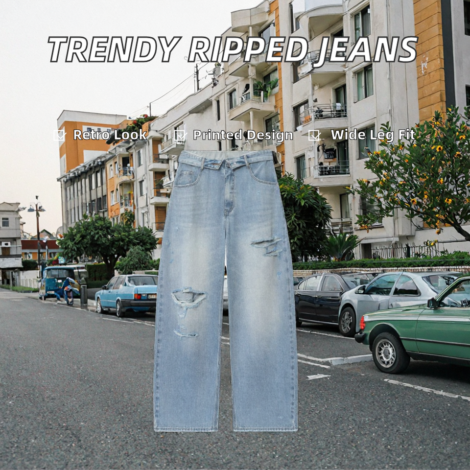 กางเกงขากว้างกางเกงยีนส์ สไตล์