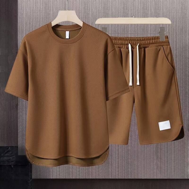 ชุดเซ็ตสองชิ้นสไตล์ญี่ปุ่นสำหรับผู้ชาย ฤดูร้อน ลำลอง สีพื้น ไซส์ใหญ่ 5 สี เสื้อยืดและกางเกงขาสั้น ผลิตโดยโรงงาน OEM รับผลิตตามสั่ง