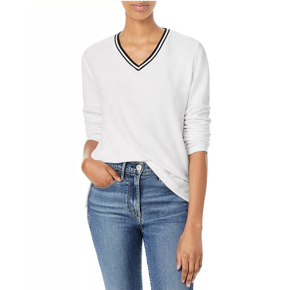 เสื้อยืดคอวีผ้าฝ้ายเนื้อนุ่มสีขาวสำหรับผู้หญิงและเด็กสาว รับผลิตตามแบบ OEM