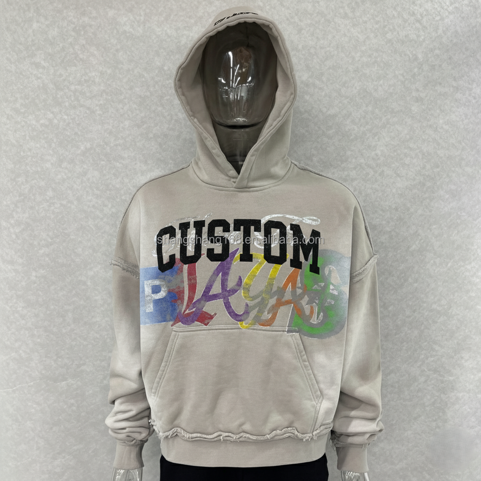 เสื้อฮู้ดดี้ครอปทรงบ็อกซี่ผ้าฝ้ายเฟรนช์เทอร์รี่เนื้อหนาพิเศษ สั่งผลิตตามแบบ OEM พิมพ์ลาย DTG ฟอกสีแบบแอซิดวอช ปักลายซันเฟด ตะเข็บกลับด้าน