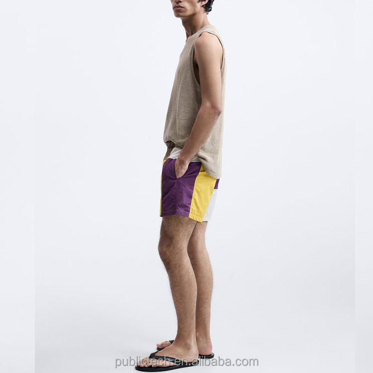 กางเกงขาสั้นเบอร์มิวดาสี่สีสำหรับผู้ชายกางเกงขาสั้นใส่ว่ายน้ำมีเชือกผูกแบบอินไลน์ปรับได้พิมพ์ลายงานตามสั่ง