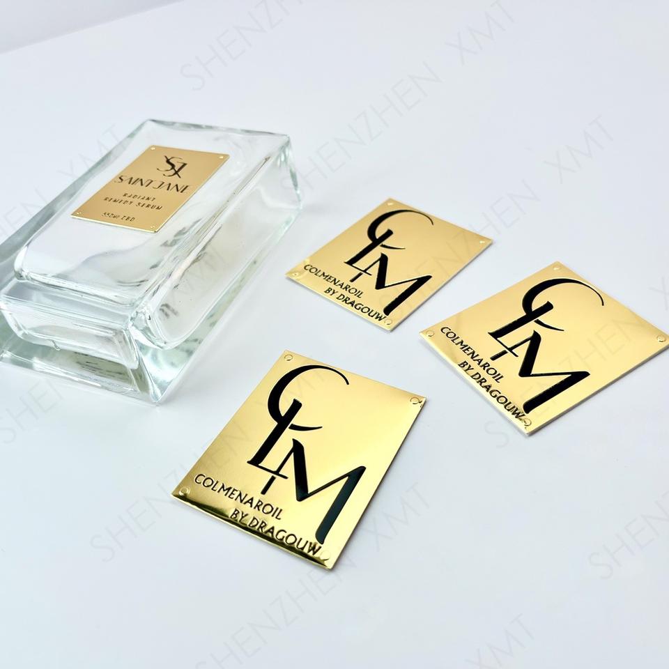 บรรจุภัณฑ์น้ำหอมโลหะสีทองแบบกำหนดเองสำหรับ OEM แบรนด์คลาสสิก ฉลากสติกเกอร์โลโก้ส่วนตัวสำหรับขวดน้ำหอม