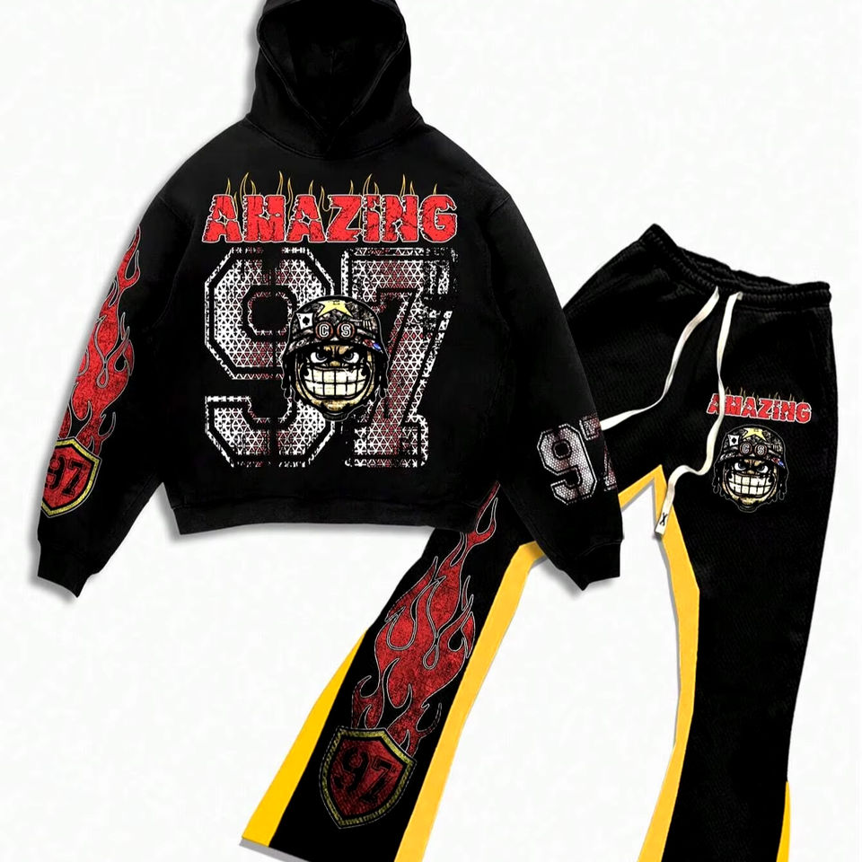 ชุดวอร์มและกางเกงวอร์มแนวสตรีทของผู้ชายชุดวอร์มพิมพ์ลายกราฟิกแบบกำหนดเอง OEM สำหรับฤดูหนาว