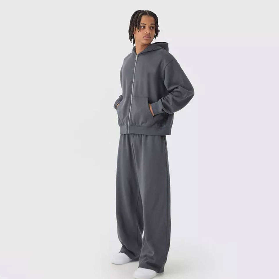 ชุดเซ็ตเสื้อแจ็คเก็ตมีฮู้ดซิปและกางเกงจ็อกเกอร์ผ้าฝ้าย 100% หนานุ่ม สไตล์สตรีทแวร์ ตกแต่งด้วยการปักลายแบบแพทช์เวิร์คและคัลเลอร์บล็อก รับผลิตตามแบบ OEM