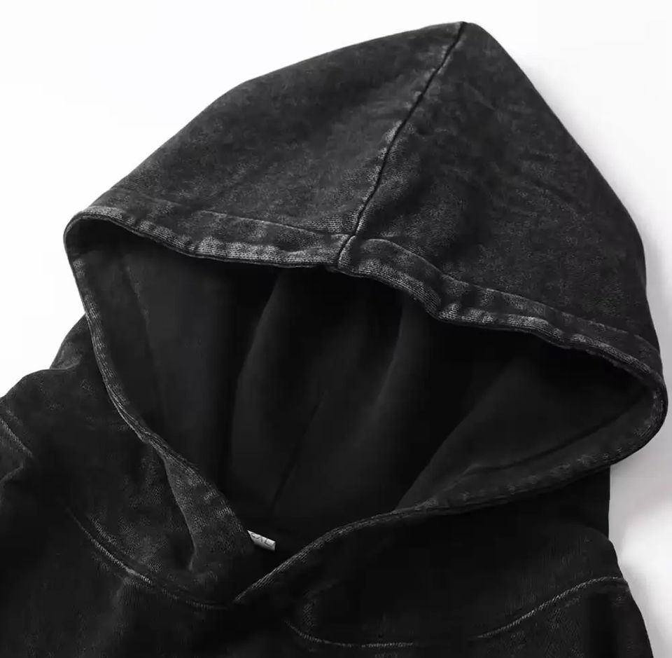 เสื้อฮู้ดสำหรับผู้ชายผ้าดิบปักชายเสื้อครอป Boxy สีซีดแสงแดดออกแบบได้ตามต้องการ