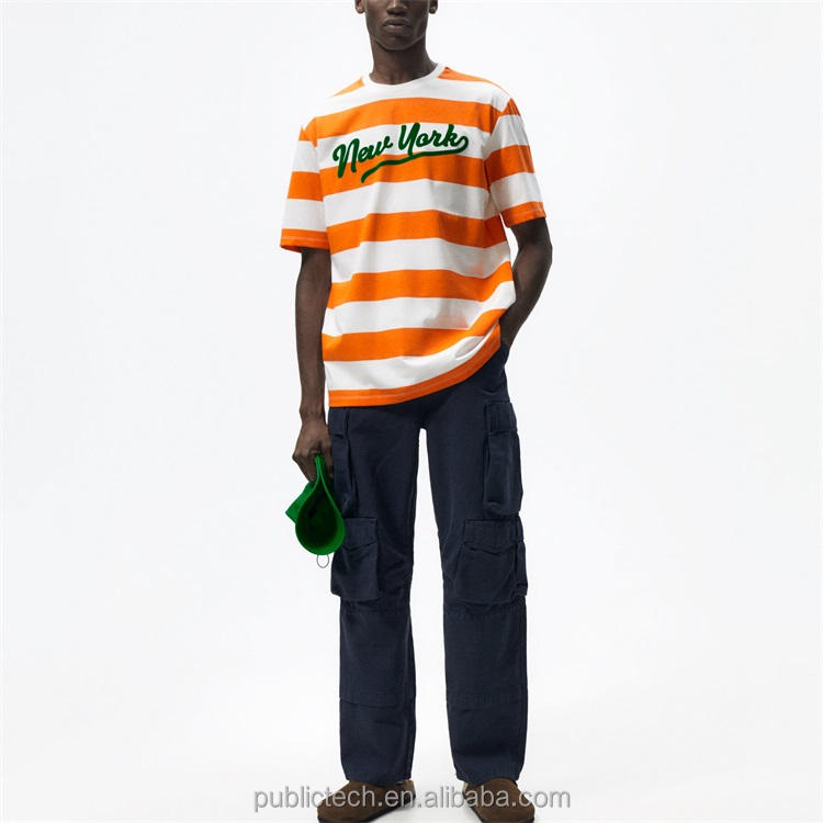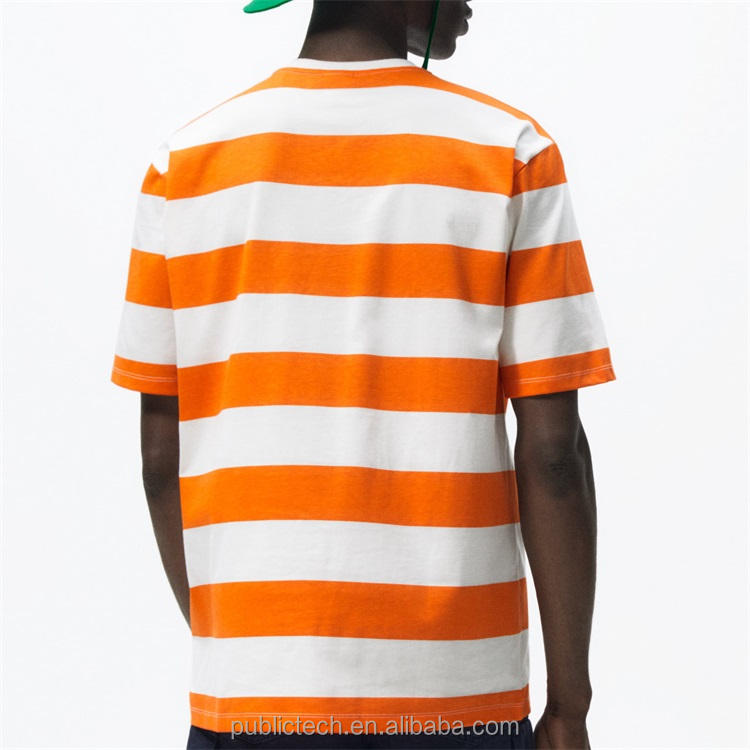 OEM เสื้อยืดคอกลมลายขวางไซส์ใหญ่สำหรับผู้ชายคอกลมทำจากผ้าฝ้าย100% ออกแบบได้ตามต้องการสำหรับฤดูร้อน