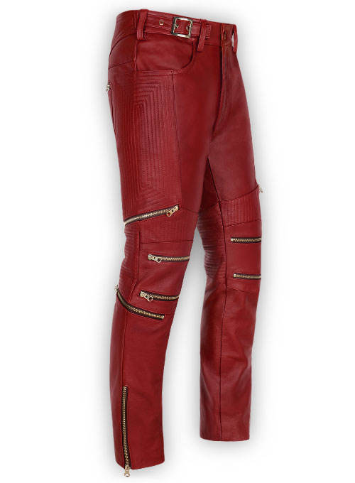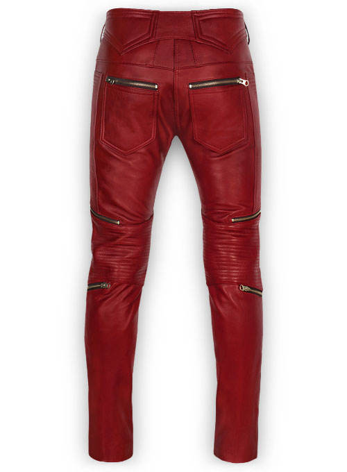 OEM กางเกงลำลองหนังคุณภาพสูงสำหรับผู้ชายหนังแท้สีแดงเชอร์รี่ออกแบบโลโก้ได้ตามต้องการ