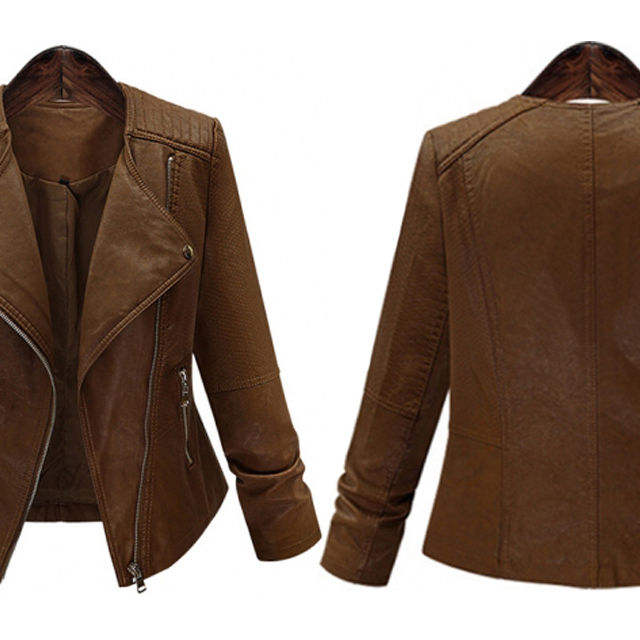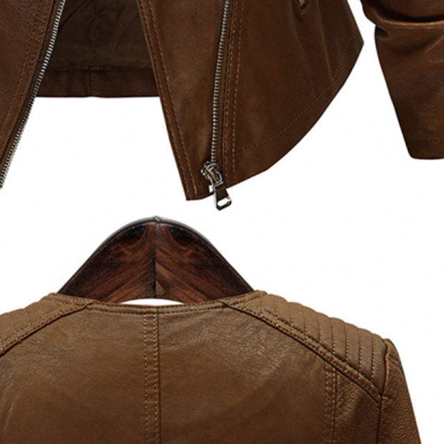 แจ็คเก็ตมอเตอร์ไซค์หนัง PU คุณภาพสูงแบบ OEM สำหรับผู้หญิง เสื้อโค้ทหนังเทียมลำลองพร้อมซับในผ้าลินิน แจ็คเก็ตแบบมีซิป