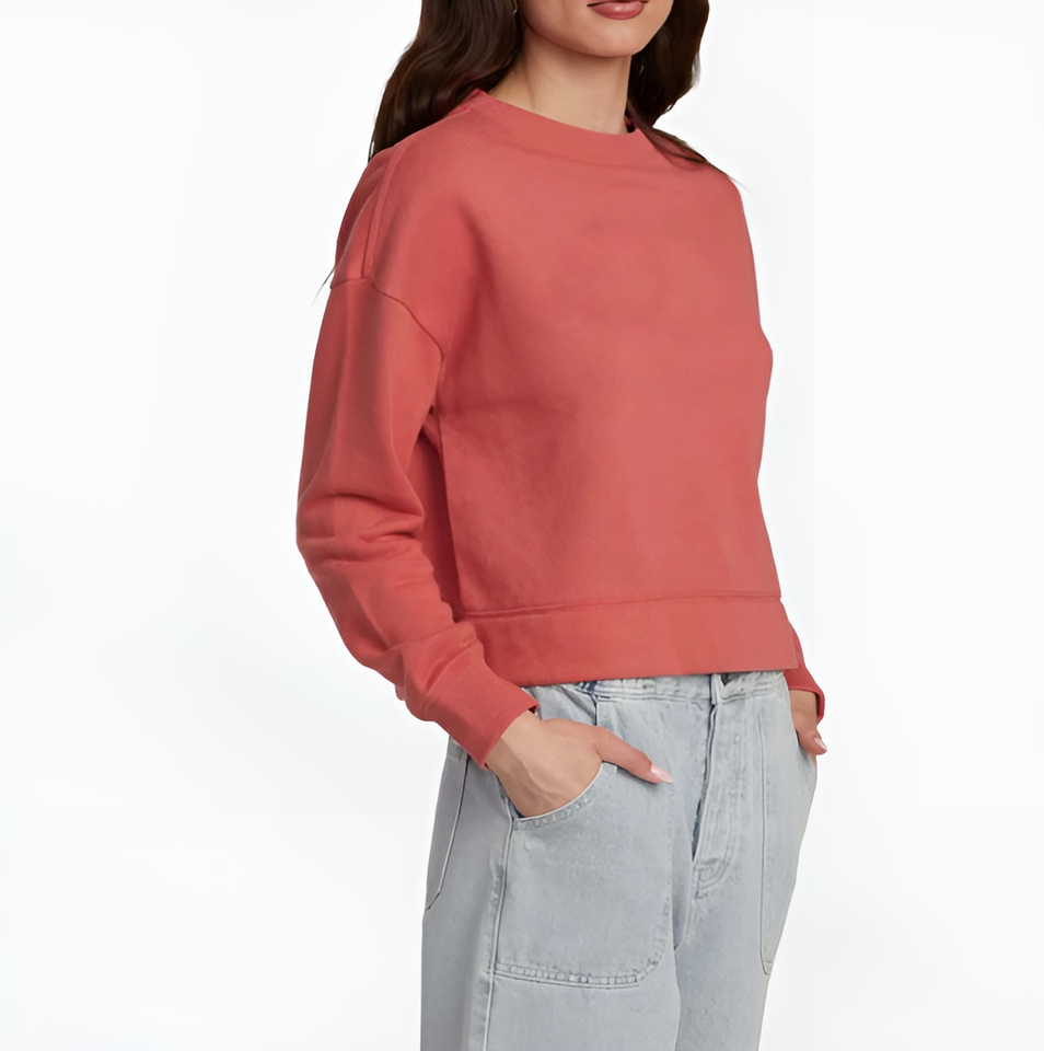 เสื้อสเวตเชิ้ตคอกลมผู้หญิงคุณภาพสูงแบบ OEM สั่งทำพิเศษ ผ้าฝ้าย 100% ลวดลายย้อมสีแบบ Acid Wash สไตล์ลำลองแนวสตรีทแวร์ ตัดเย็บแบบครอป พร้อมป้ายตกแต่ง