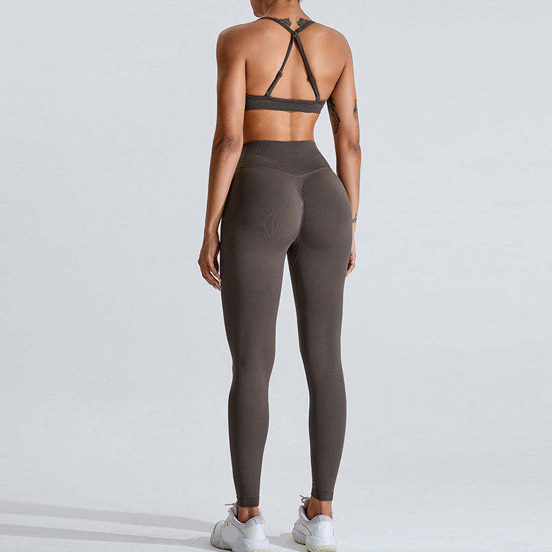 กางเกงโยคะระบายอากาศแบบถักเอวสูงสำหรับผู้หญิงเลกกิ้งออกกำลังกายเลกกิ้งออกกำลังกาย
