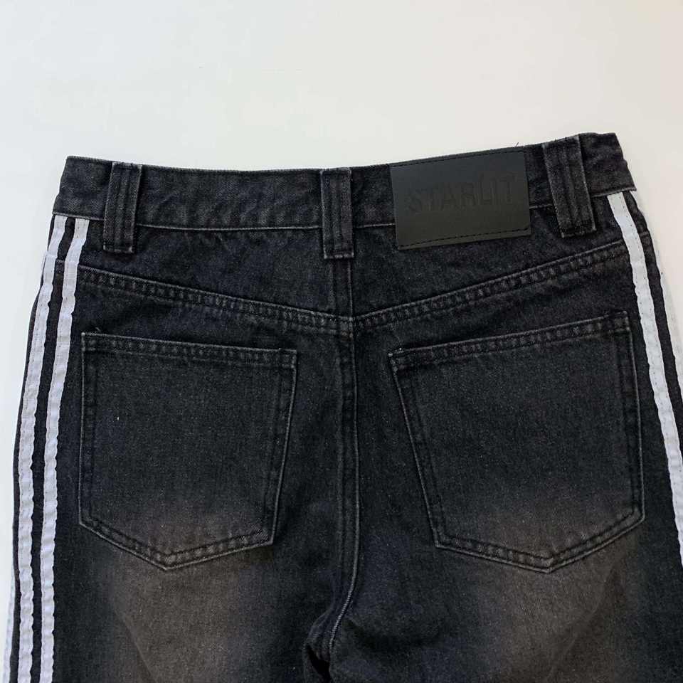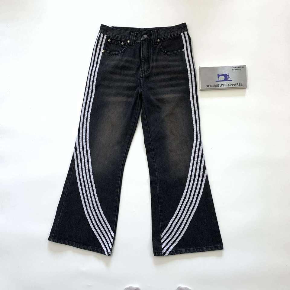 กางเกงยีนส์ผู้ชายทรงตรงเอวสูงแบบสั่งทำพิเศษ แต่งแถบข้าง กระดุมผ้าฝ้าย สไตล์ลำลอง ลวดลายโลโก้ ล้างสี สำหรับฤดูใบไม้ร่วง