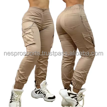 ชุดเซ็ตผ้าฝ้ายสีกากีสำหรับผู้หญิง แบบสั่งทำ OEM ทรงปกติ เอวสูง สไตล์ลำลองสำหรับฤดูร้อน ผ้าซาติน แต่งลูกไม้ ระบายอากาศได้ดี ปักลาย กางเกงคาร์โก้