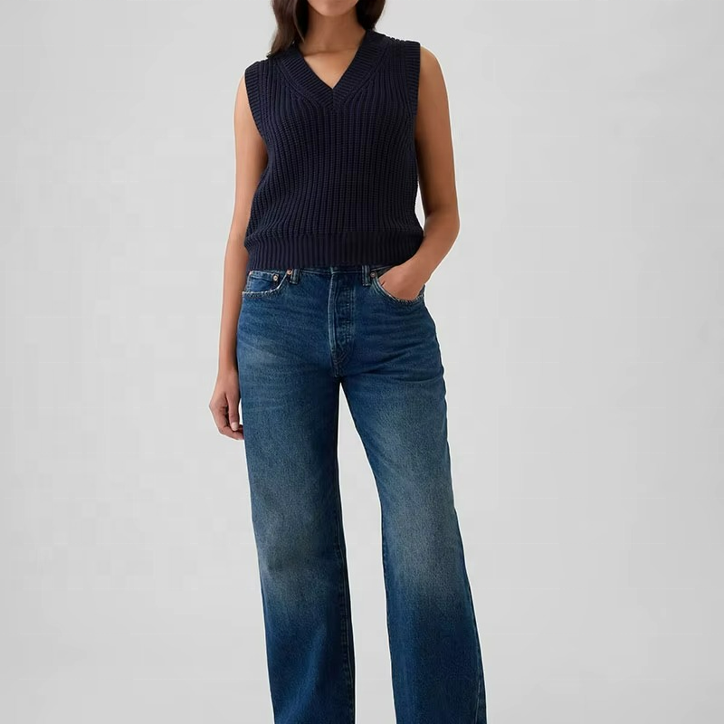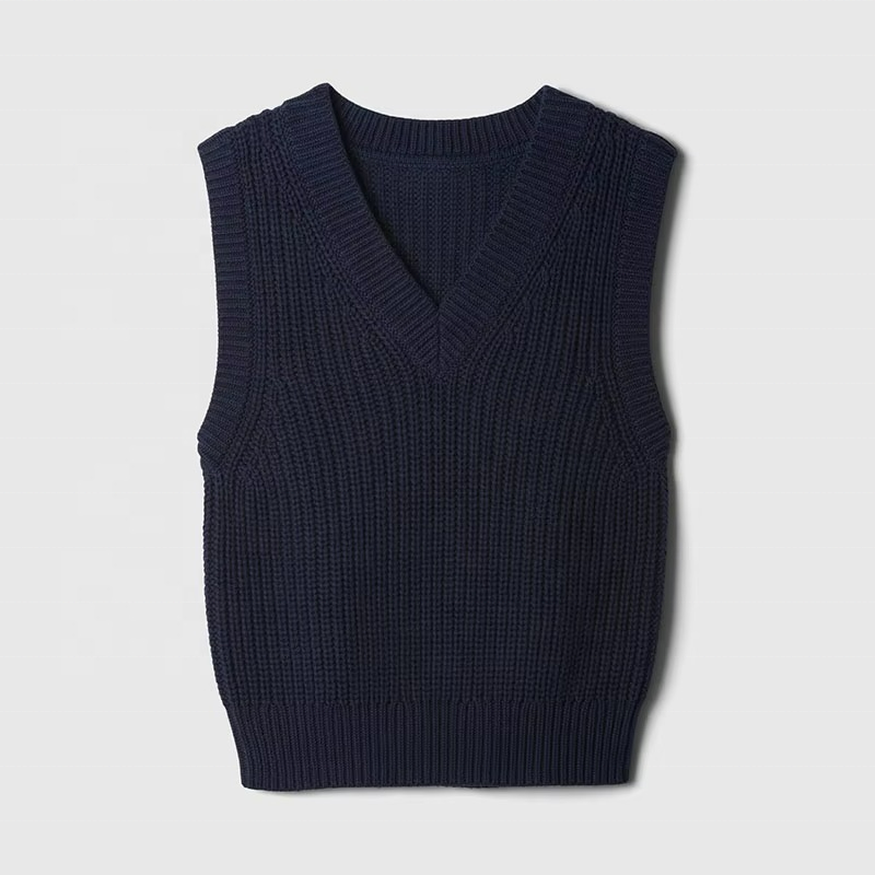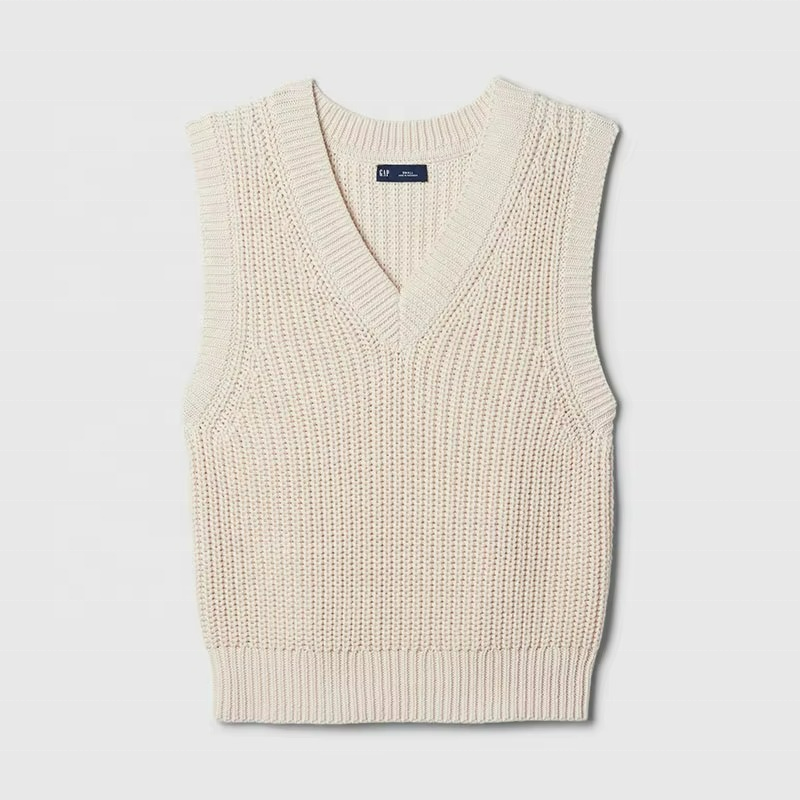 เสื้อกั๊กไหมพรมคอวีแบบถักสั่งทำ OEM สำหรับผู้หญิง เสื้อกั๊กแขนกุดสำหรับผู้หญิง