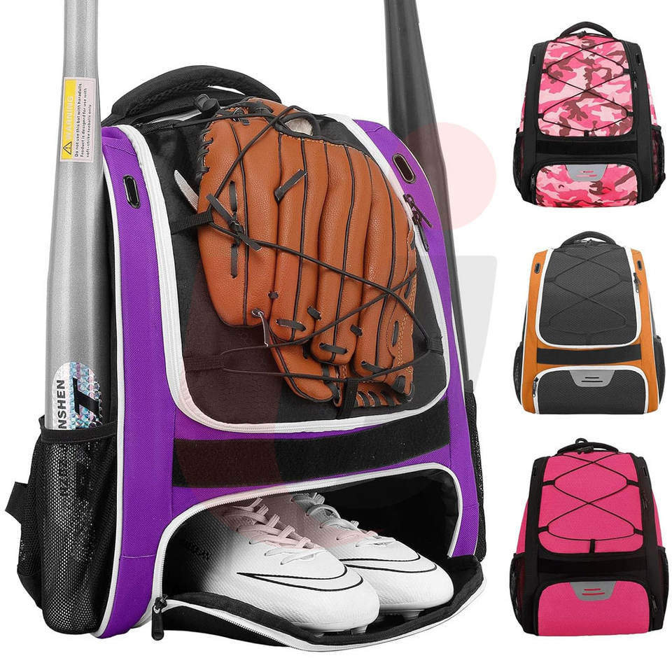 กระเป๋าเบสบอลแบบสปอร์ต ผลิตตามสั่ง (OEM) ความจุขนาดใหญ่ ผ้าฝ้ายผสมโพลีเอสเตอร์ หนัง ใส่โลโก้ทีม หมายเลข กันน้ำ ทนทาน น้ำหนักเบา