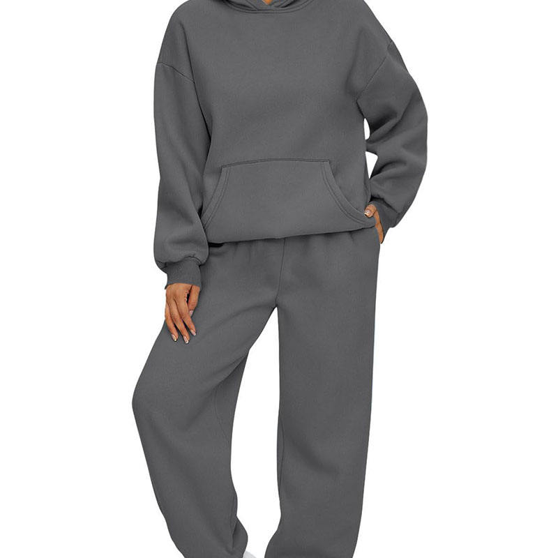 ชุดวอร์ม2ชิ้นสำหรับผู้หญิงชุดวิ่งจ๊อกกิ้งแบบลำลองชุดครอปมีฮู้ดและเลานจ์พิมพ์ลายโลโก้ออกแบบได้ตามต้องการ
