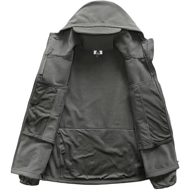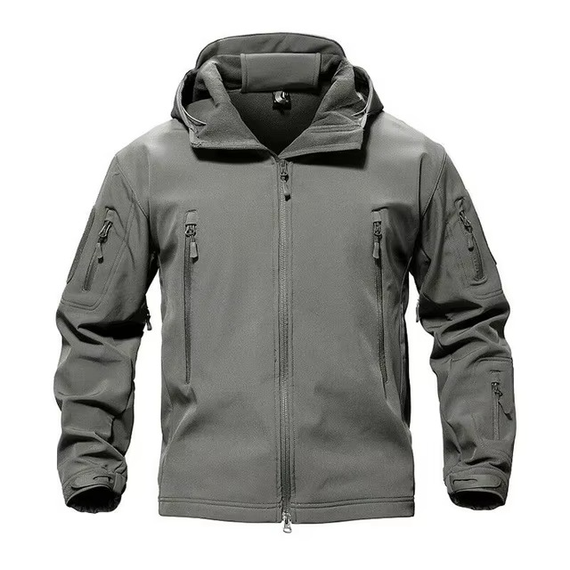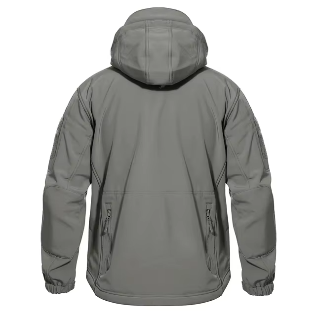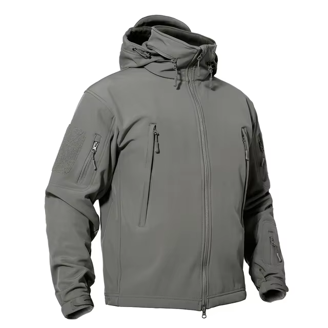 แจ็คเก็ตทหารสีเทาแบบลำลองสำหรับผู้ชาย OEM รับทำโลโก้ มีหลายกระเป๋า สำหรับกิจกรรมกลางแจ้ง มีฮู้ด กันน้ำ กันลม ทนทาน