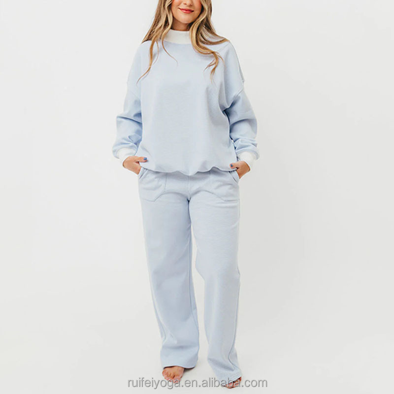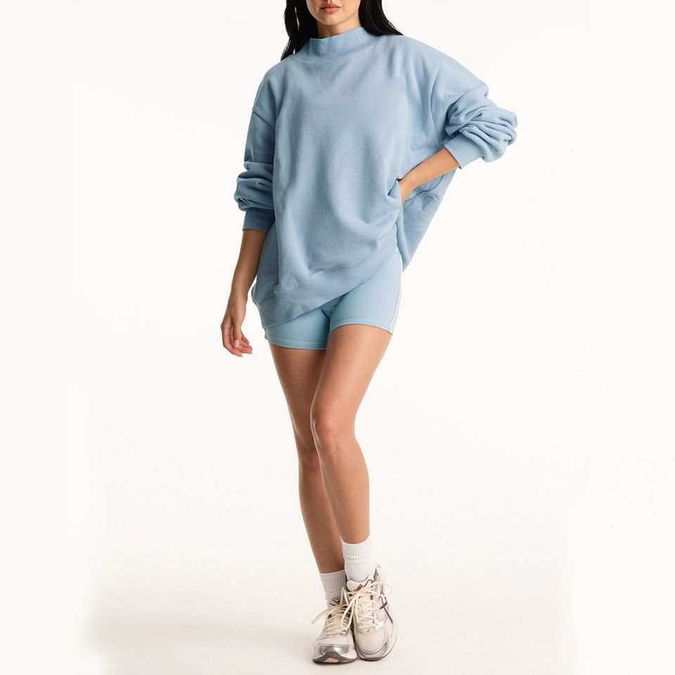 เสื้อสเวตเชิ้ตคอเต่าผ้าฝ้ายเฟรนช์เทอร์รี่ทรงโอเวอร์ไซส์สำหรับผู้หญิง แต่งแถบสีตัดกัน พร้อมโลโก้แบบ OEM สั่งทำได้ ใส่สบาย